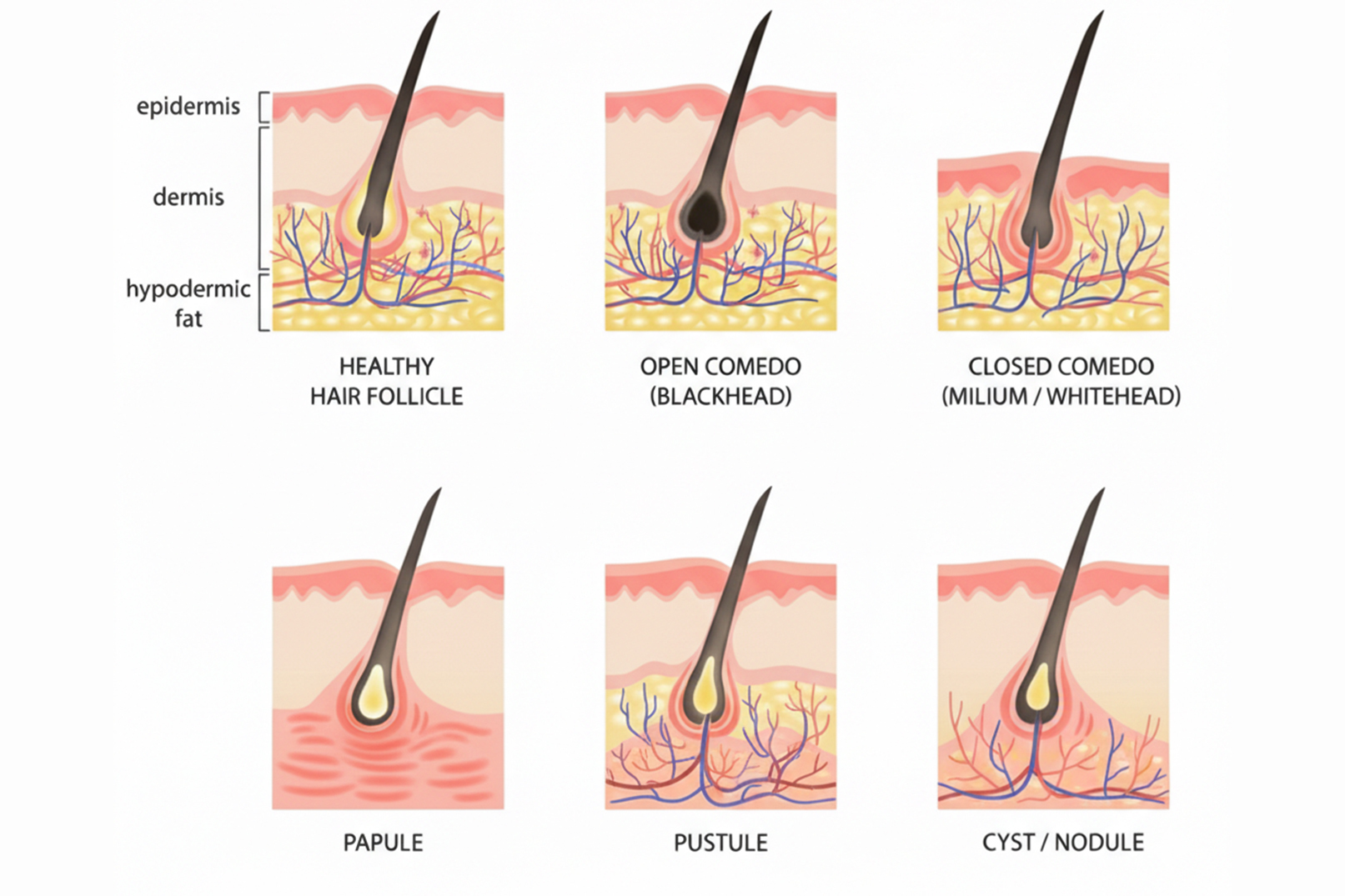 痘痘的形成,幾乎不會只因為單一原因,而是多種內外在因素交互作用下的結果。了解這些根本原因,才能對症下藥,阻斷痘痘生成的惡性循環。