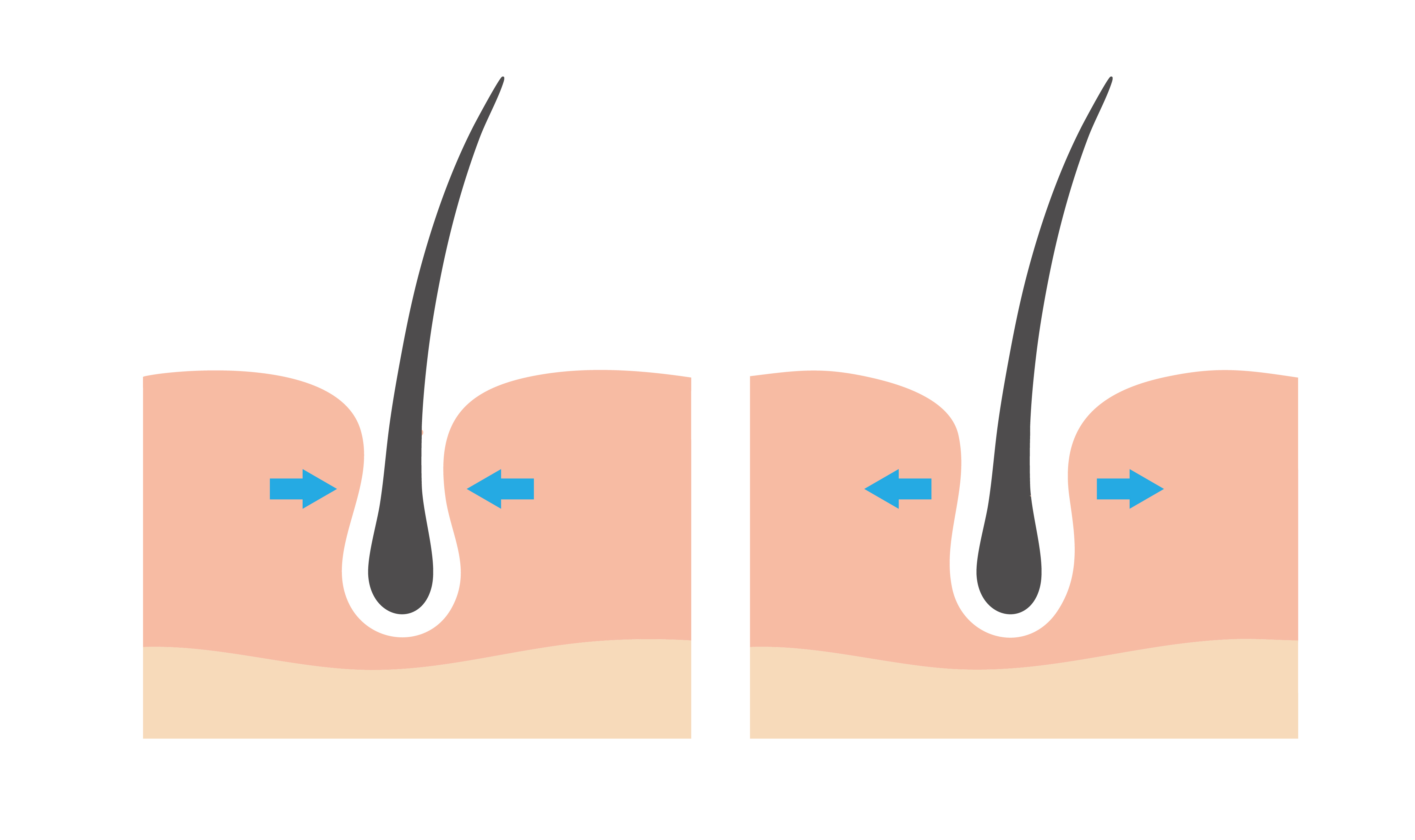 隨年齡增長或紫外線傷害,膠原蛋白與彈力纖維會逐漸流失,毛孔缺乏支撐力,會被地心引力拉長變形,出現水滴狀或線狀,這就是典型的「老化型毛孔」。