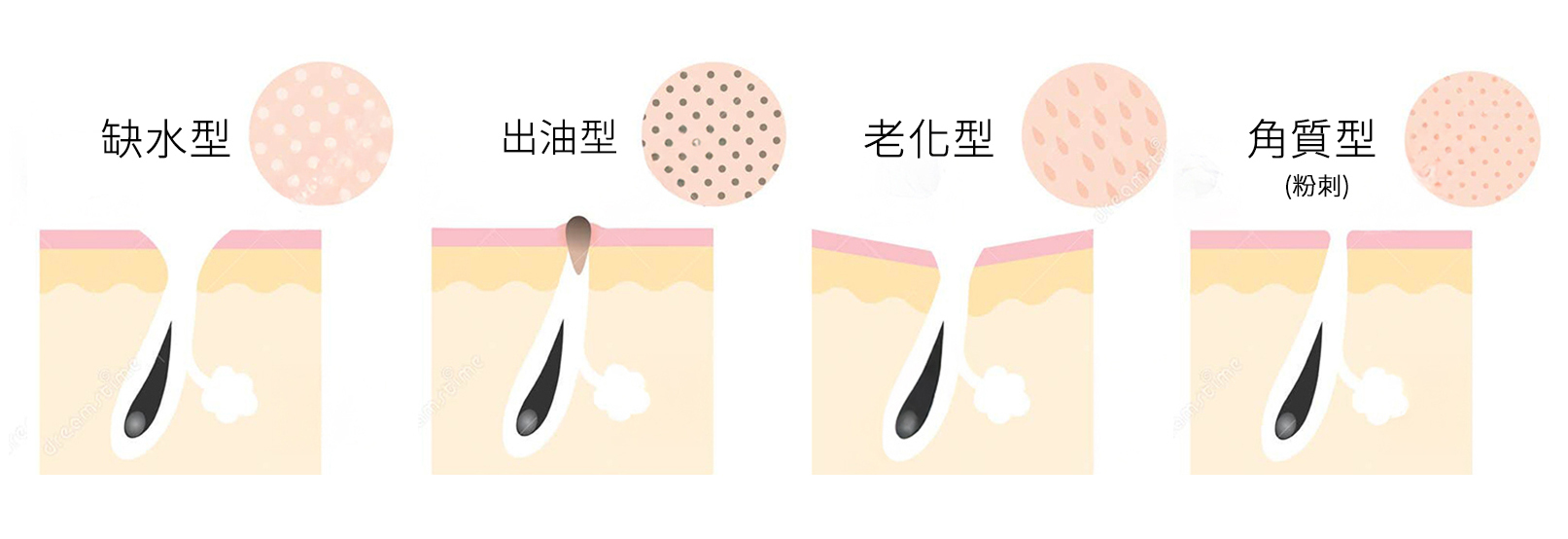 乾燥型毛孔雖不一定出油,卻會因缺水造成角質萎縮、肌膚凹陷,讓毛孔更加明顯。
