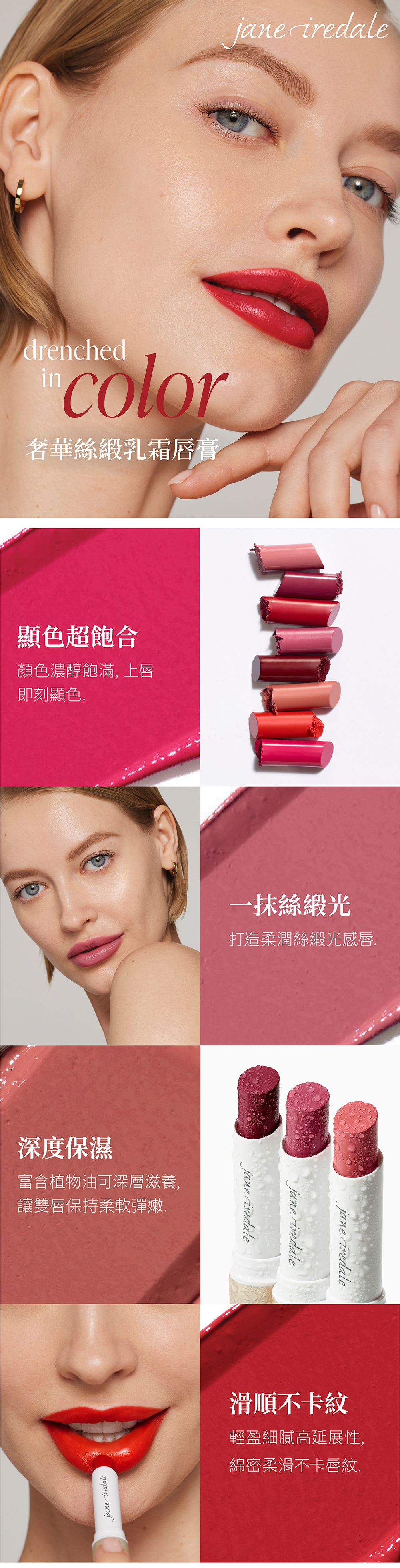 色彩濃郁而質地輕盈的唇膏,具高顯色度呈現鮮明飽和的唇彩,絲緞霧光妝效令雙唇更加迷人。細緻乳霜質地延展性高,塗抹時綿密柔滑不卡唇紋,豐富植萃與天然植物油讓雙唇更顯豐滿彈潤。唇天然可食配方,安心使用無負擔。