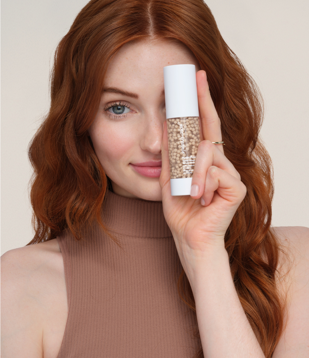 + 膚色粉球以微脂囊包覆純淨礦物色料