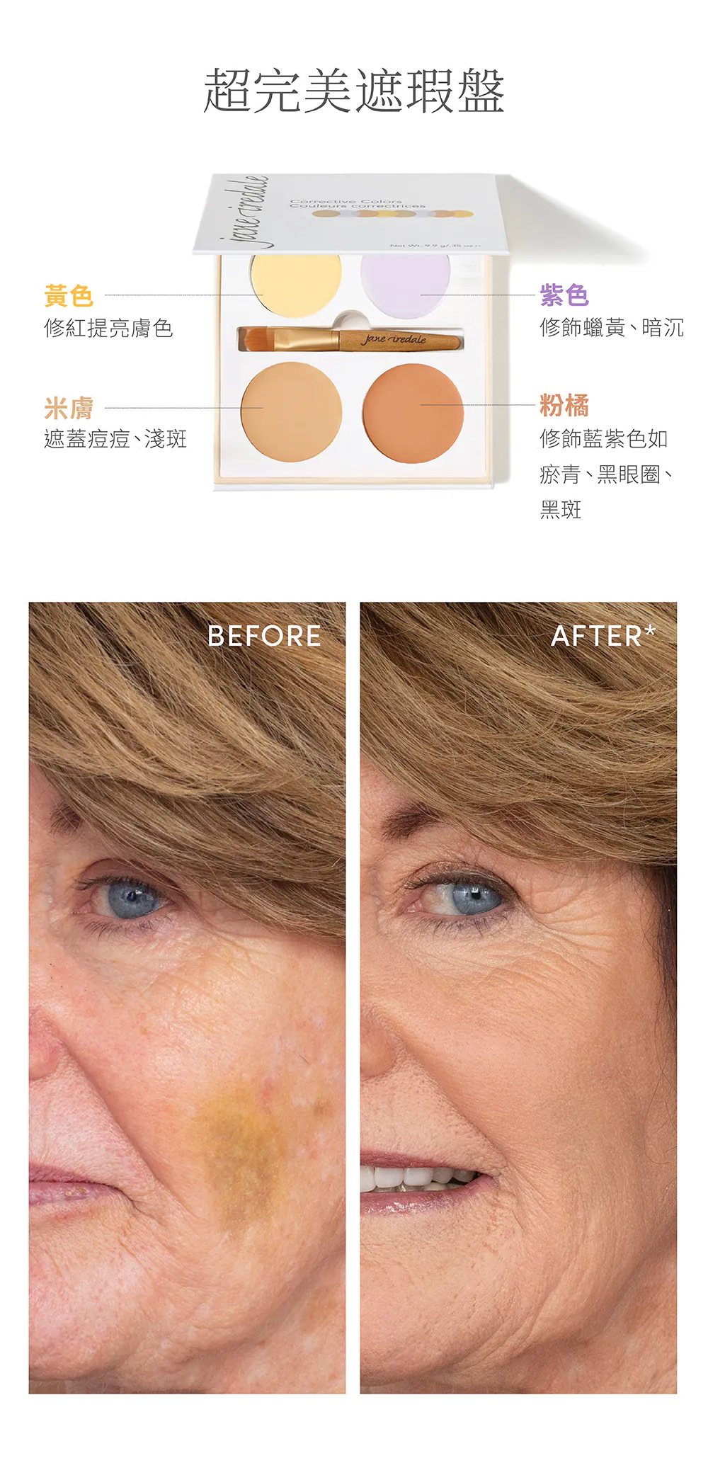 精心配製的四色遮瑕盤,完美遮蓋各種瑕疵,把黑眼圈、斑點、泛紅、瘀青通通藏起來,輕鬆擁有專業彩妝技巧,打造精緻無瑕妝容。