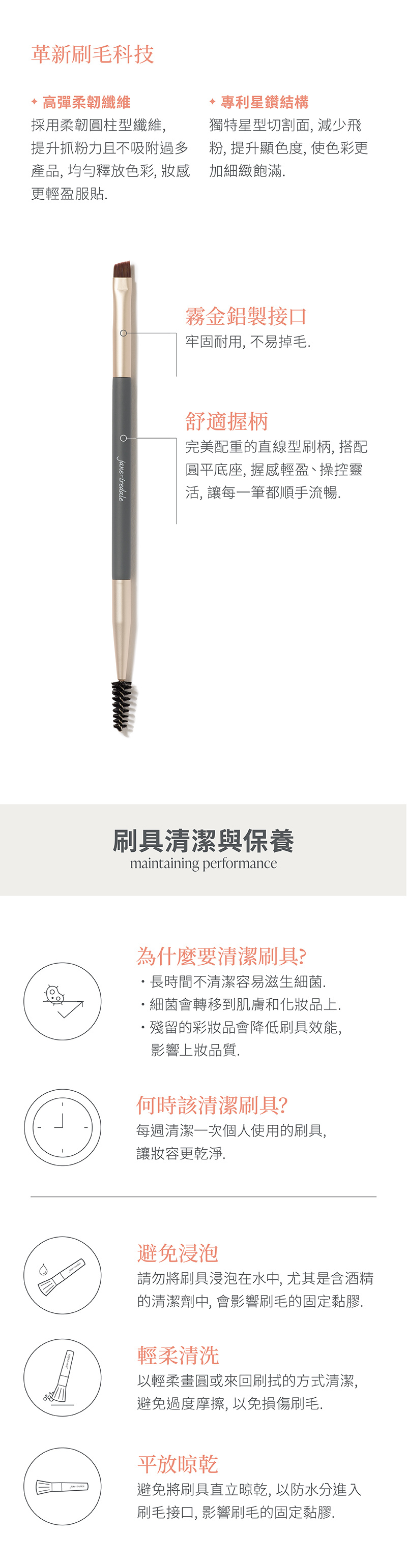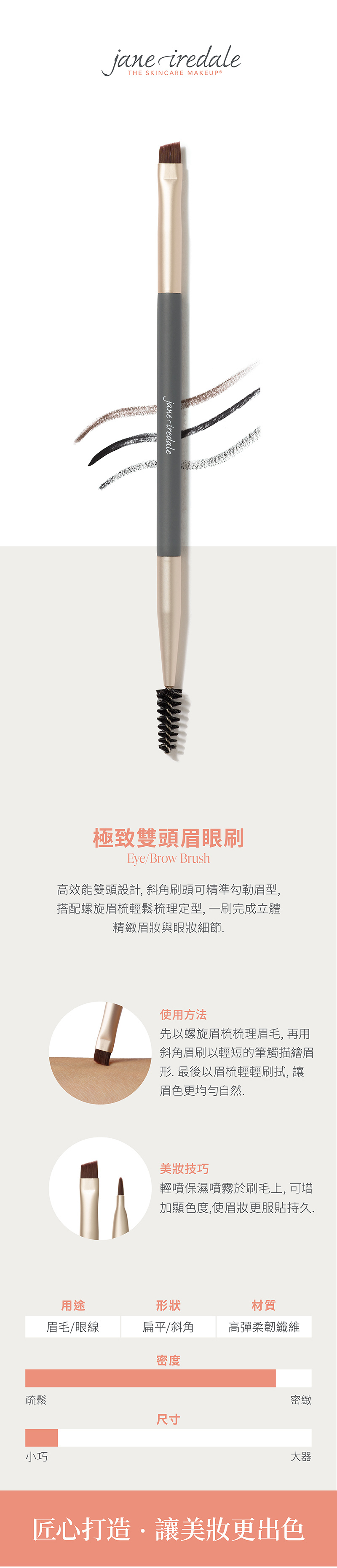 高效能雙頭設計,斜角刷頭可精準勾勒眉型,搭配螺旋眉梳輕鬆梳理定型,一刷完成立體精緻眉妝與眼妝細節。