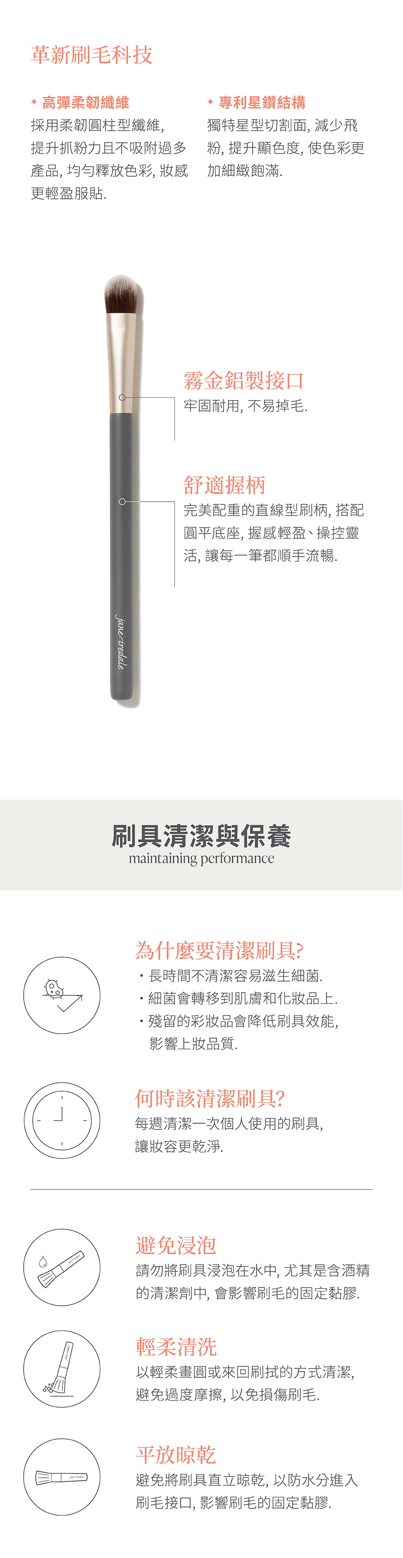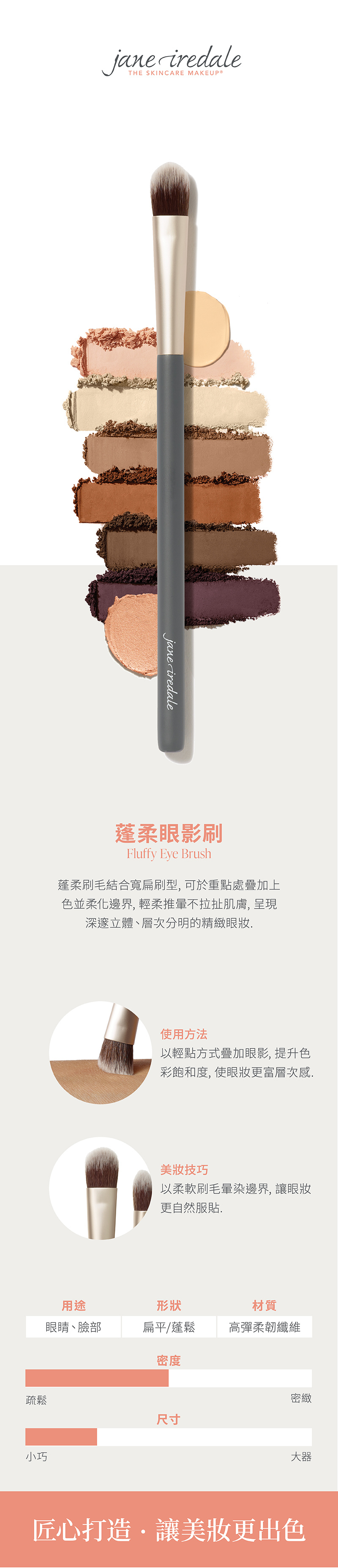 蓬柔刷毛結合寬扁刷型,可於重點處疊加上色並柔化邊界,輕柔推暈不拉扯肌膚,呈現深邃立體、層次分明的精緻眼妝。