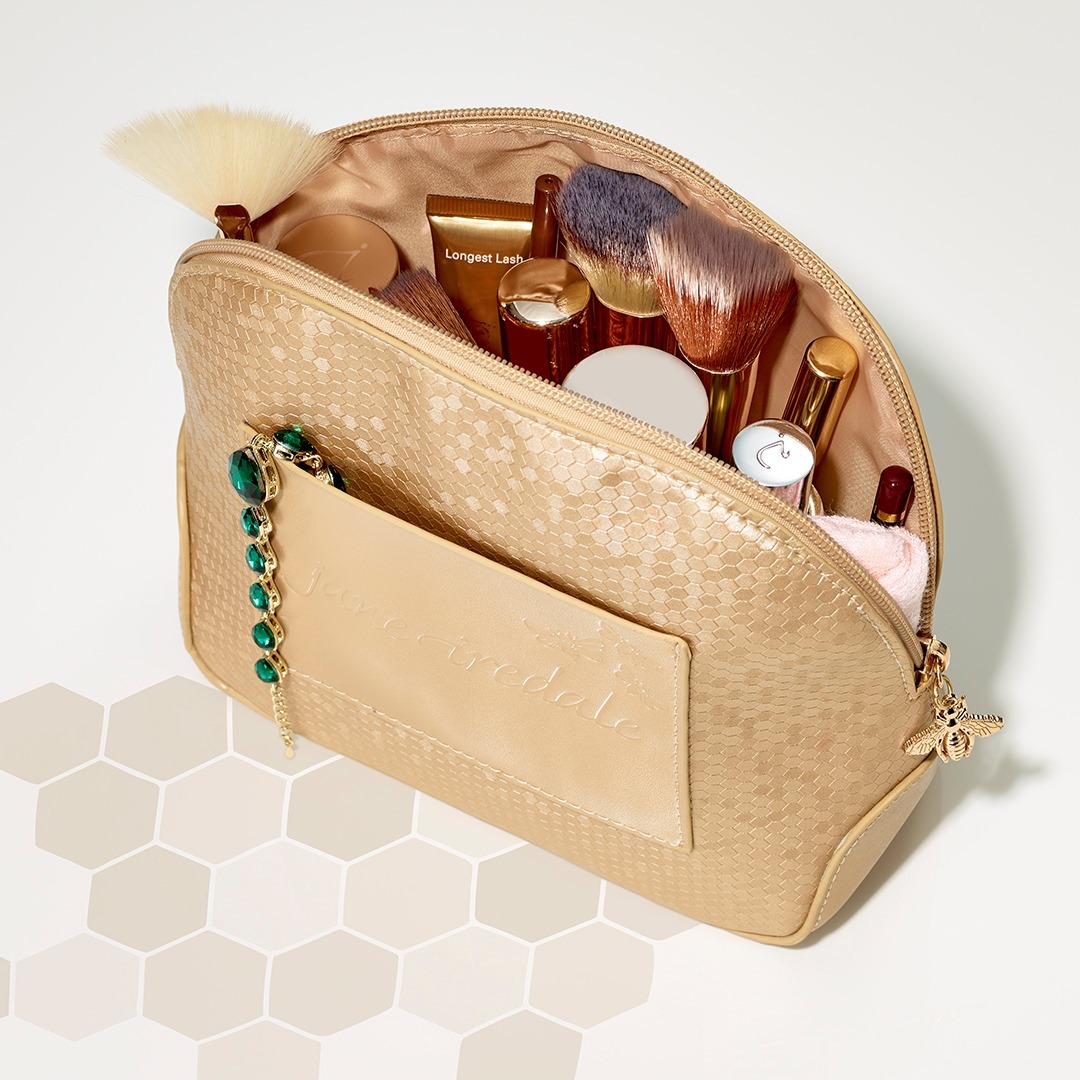 霧金表面質感好又防水,材質輕巧內裝容量大,彩妝、保養品、刷具及各種小物通通裝進去,一包搞定!