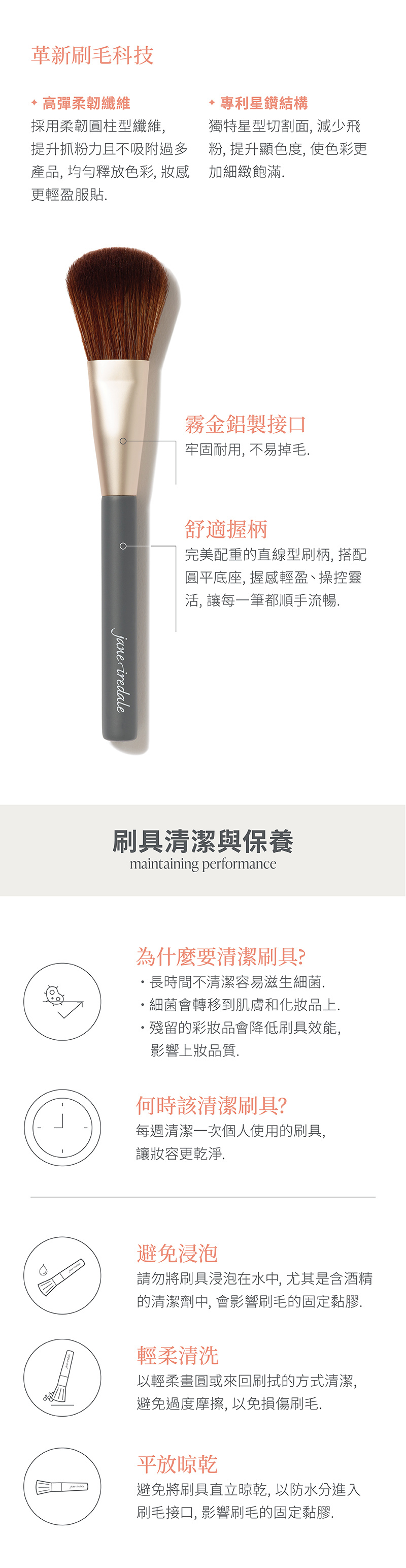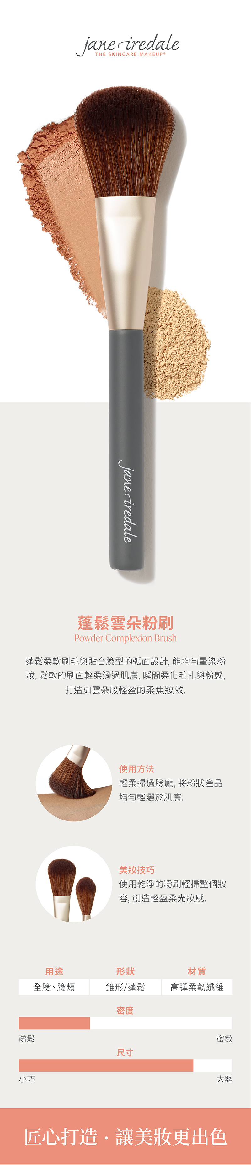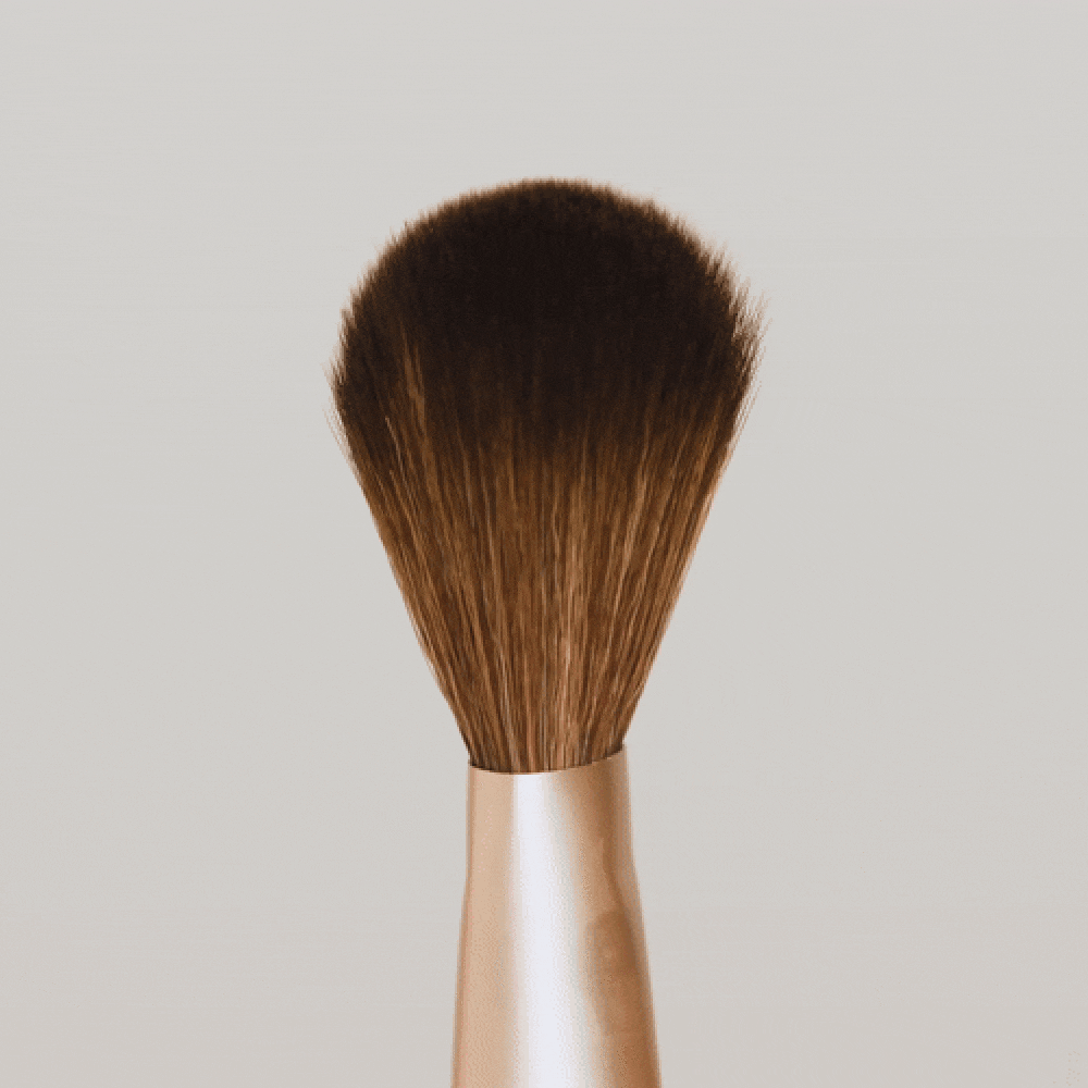 蓬鬆柔軟刷毛與貼合臉型的弧面設計,能均勻暈染粉妝,鬆軟的刷面輕柔滑過肌膚,瞬間柔化毛孔與粉感,打造如雲朵般輕盈的柔焦妝效。