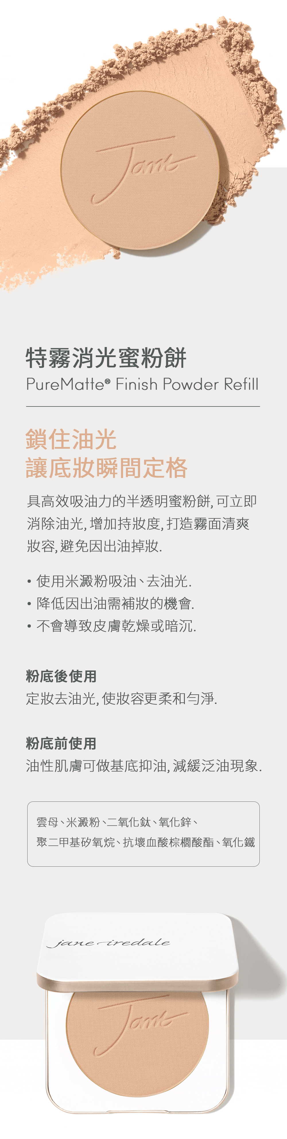 + 粉底後使用:柔焦定妝去油光,使妝容柔和勻淨