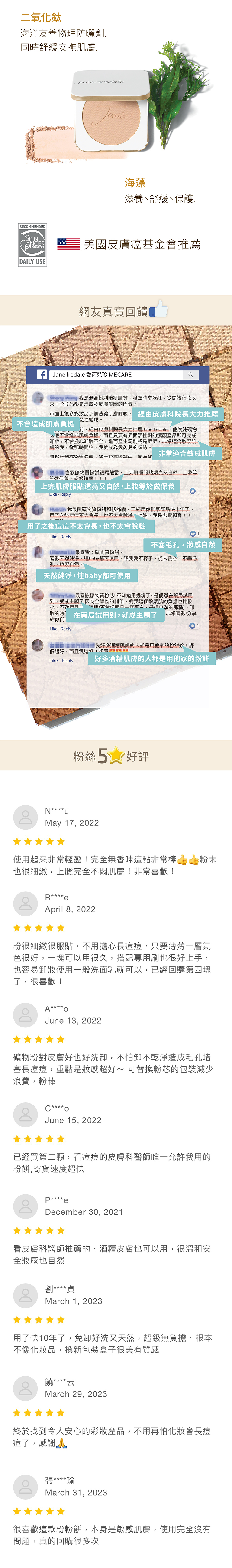 愛芮兒珍原創礦物粉餅,適用酒糟、敏感、痘痘等問題性肌膚,連孕婦都能安心使用的全方位礦物粉底。精選99%高品質微細礦物組成,成分純淨、安全、舒敏,具獨特的肌膚屏障保護功能,可有效隔離外界刺激。此礦物粉餅不僅是粉底更是臉部最好的防護品,適用所有膚質。